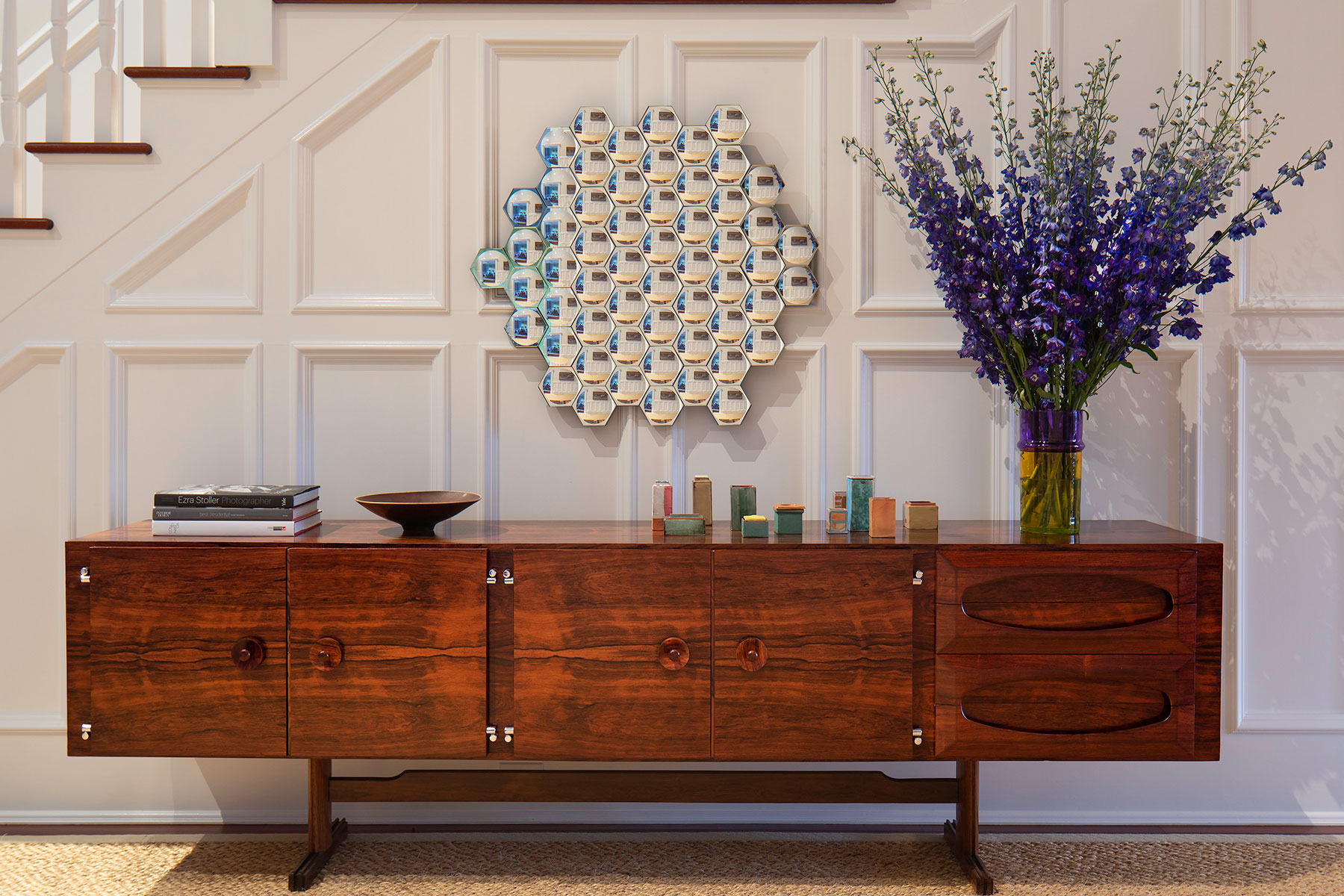 Yes there is room for fun, color and engaging furniture forms in the Hamptons! Designing for a residence with many living and sitting rooms, multiple indoor and outdoor dining areas, two master suites and several guestrooms can present some exciting challenges and opportunities. We worked to give each room its own personality and draw, while maintaining a common design sensibility and language throughout the house. This project was featured in Hamptons Cottages and Gardens magazine.