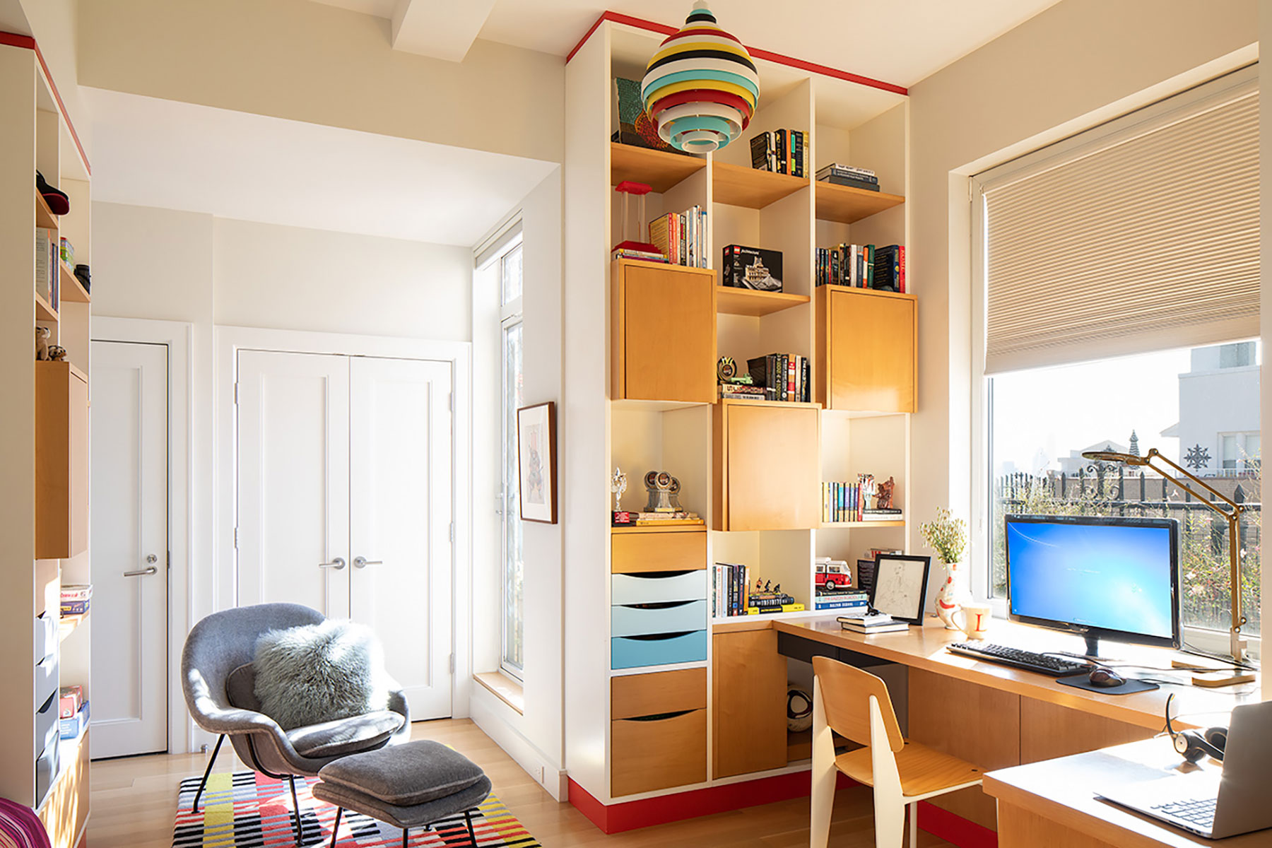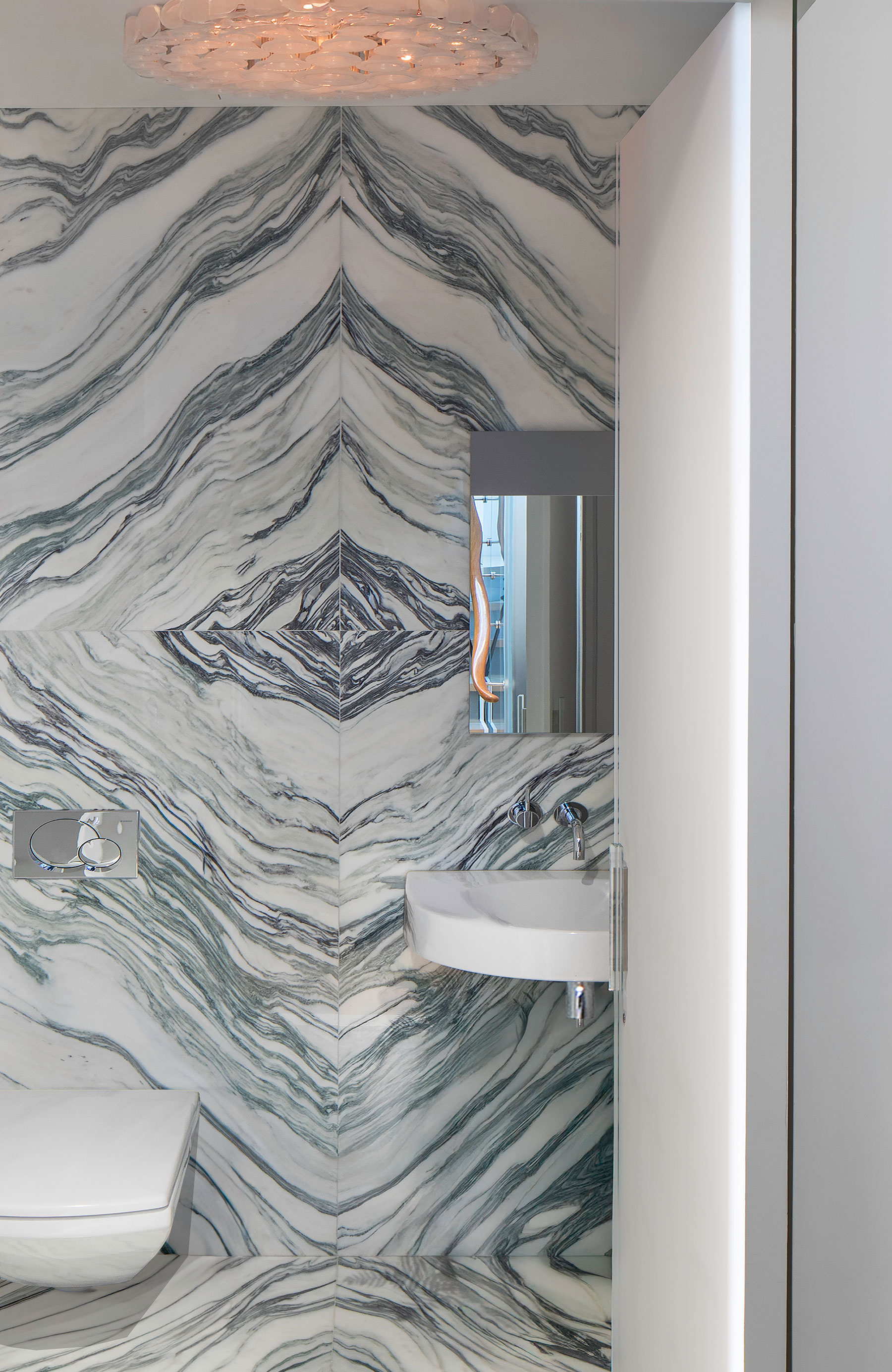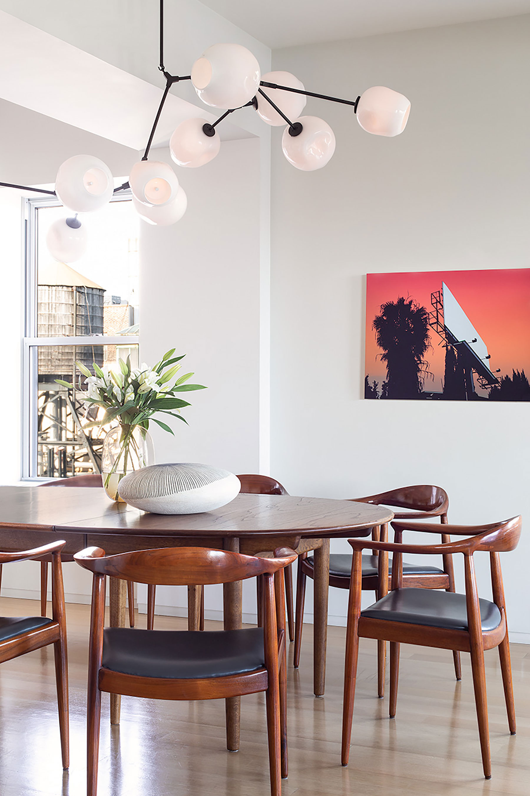 We collaborated tightly with our client who had a love and knowledge of midcentury furniture designers on this renovation and furnishing of a duplex apartment residence on Central Park West. Carefully curated vintage pieces combine with custom furnishings and millwork in the language of the midcentury masters. Some of our favorite designs include a rosewood kitchen island based on a midcentury Brazilian console, a chaise designed in collaboration with Vladimir Kagan studio and two extraordinary stone fireplaces.