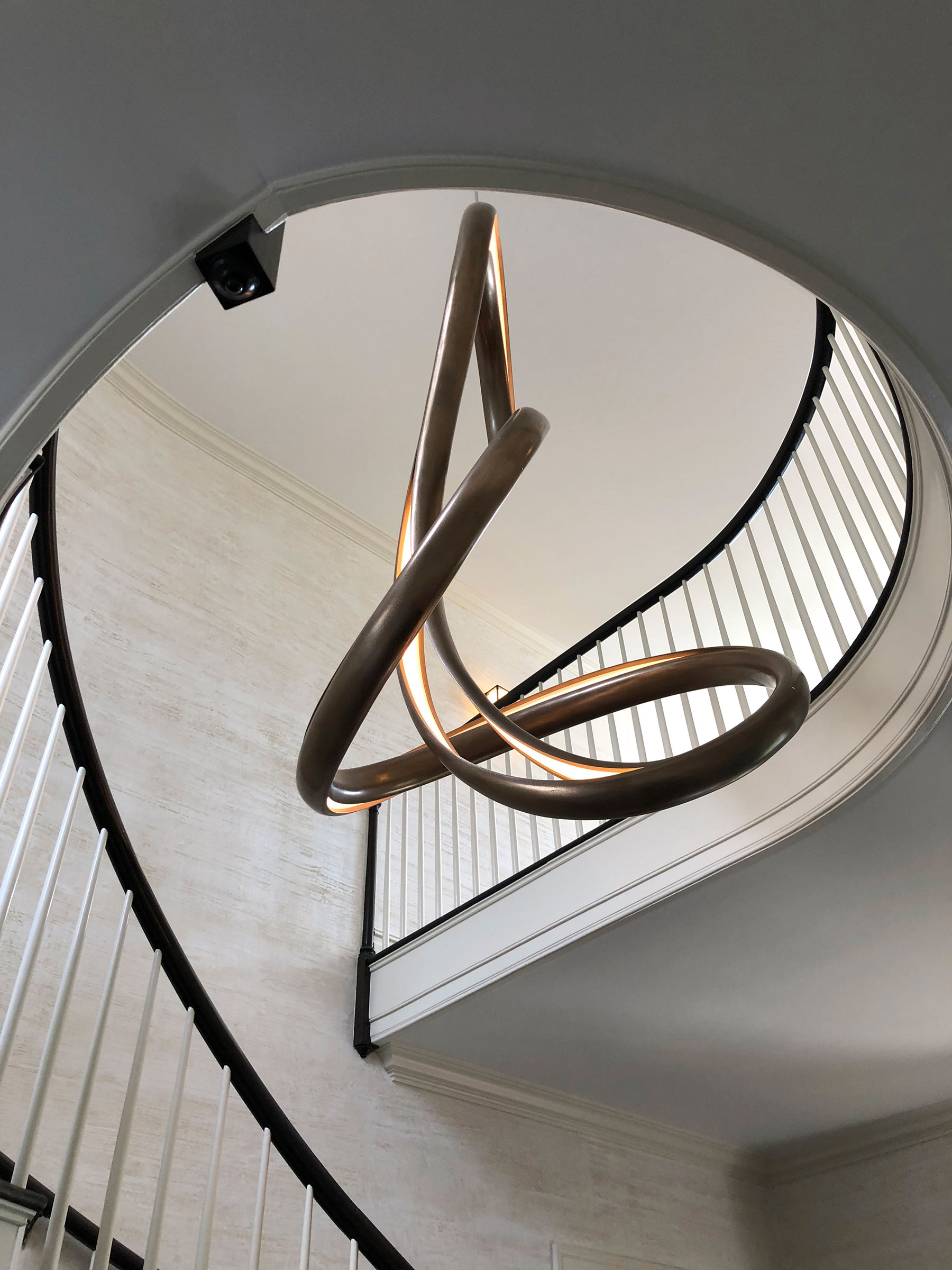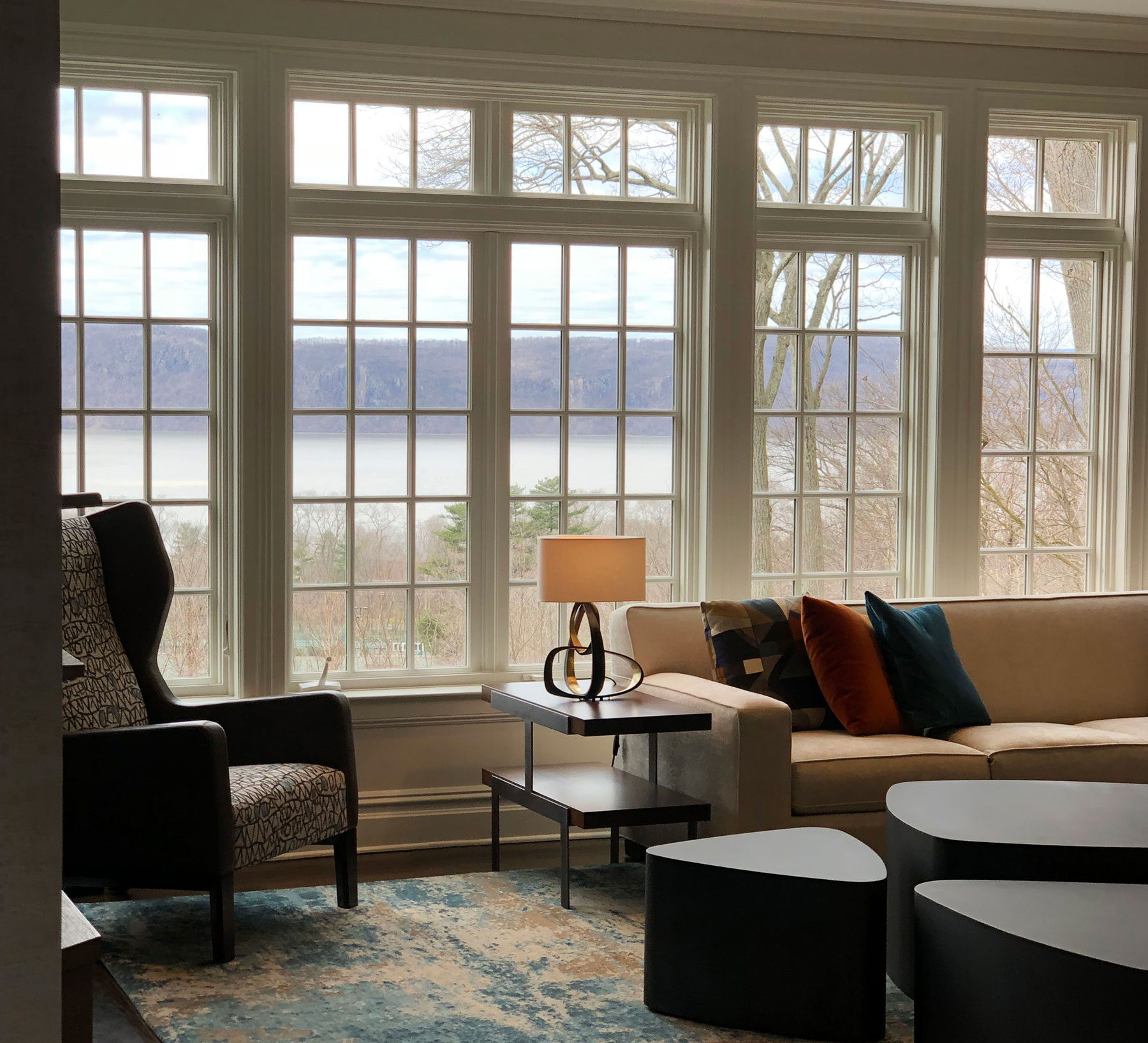 Our clients loved this spectacular historic country club estate overlooking the Hudson, but had wanted to transform a very traditional interior into something much more modern. We introduced a warm modern palette with new finishes, lighting and furnishings. We reconceived and reconfigured the master bedroom, closets and bath into a gracious modern sleeping, lounging, dressing and bathing suite.